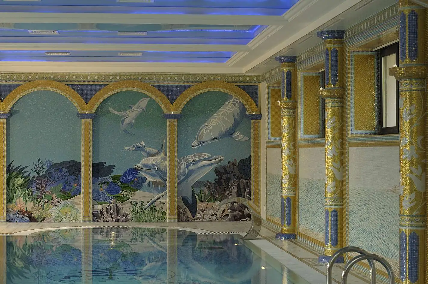 Among the elements of the Murano Speccio collection are rich shades imitating precious metals: gold, silver, bronze. The wealth of the east is best conveyed by means of an artistic mosaic panel. The professional team of our mosaic studio Art & Natura is ready to implement even the most complex projects.